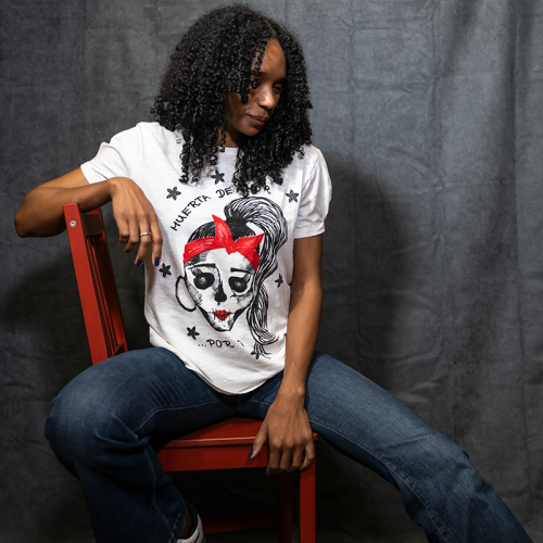 This "I'm Dead in Love" t-shirt in ivory features short sleeves with darts at the cuffs and a wide round neck, giving it a slightly oversized fit. Made from 100% cotton slub, it has a skull print with the message "Dead in love... with you" on the front.